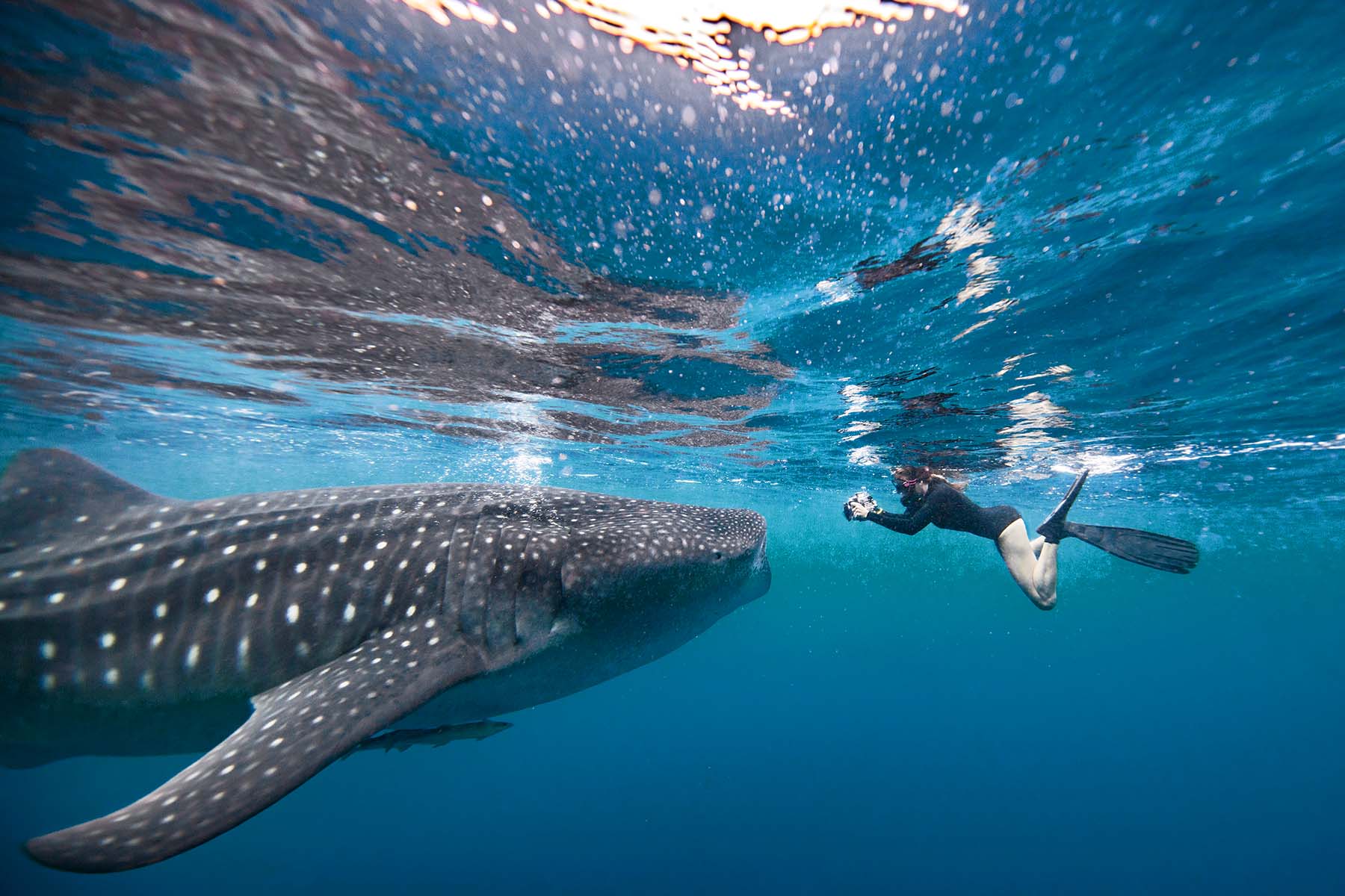 Off the beaten path to the coastal bay on the Gulf of Mexico. Swim along side the slow-moving filter feeding shark and the largest known fish species, the magestic Whale Shark embraced by the mountains of the Baja desert in Bahia de Los Angeles.